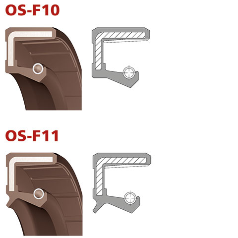 Juntas de eje de FKM estándar, modelos OS-F10 y OS-F11, con carcasa metálica totalmente cubierta
